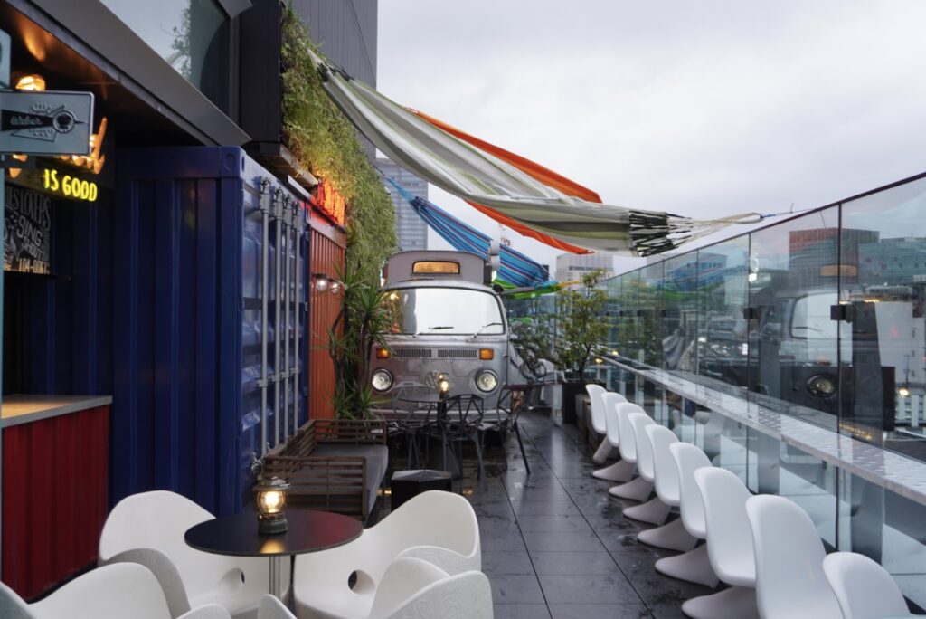 ホテルの屋上で汚れを気にせず過ごせるクリーンさも魅力の一つ。