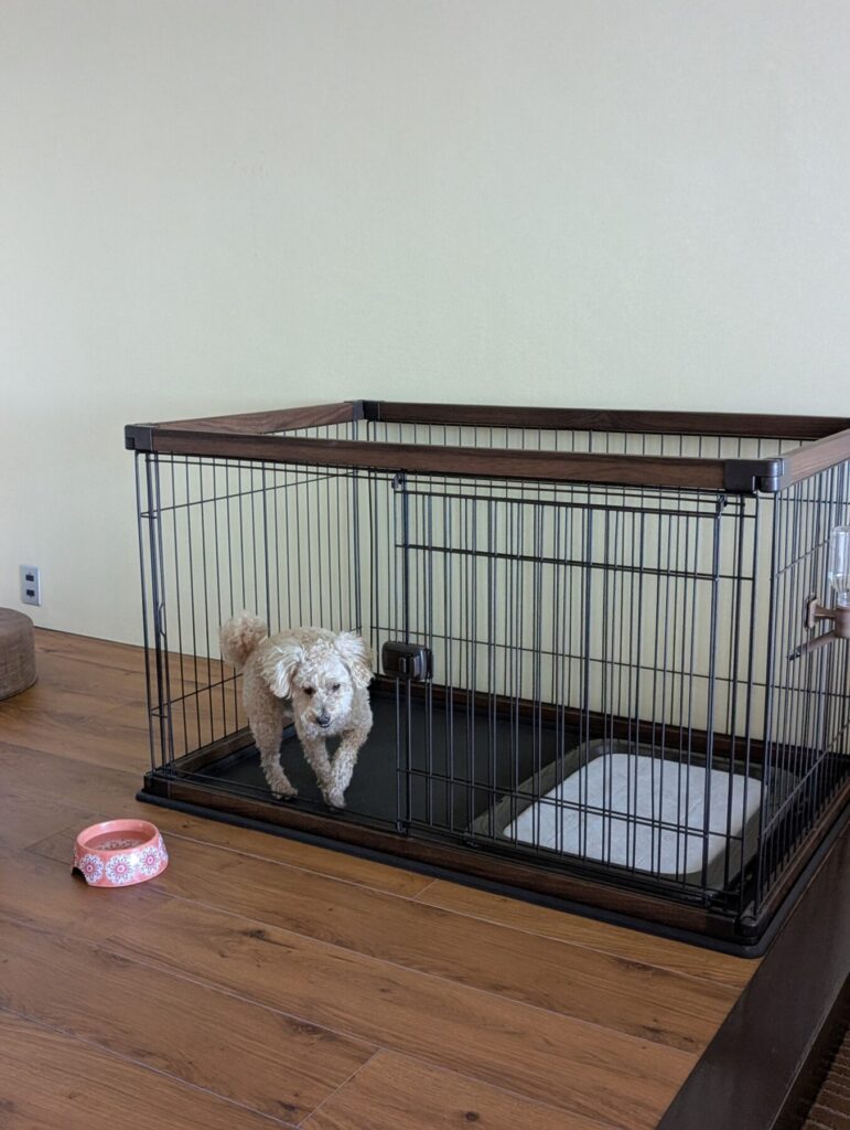 大型犬でも安心感があるサイズのケージなので、愛犬ものびのびと過ごせそう。