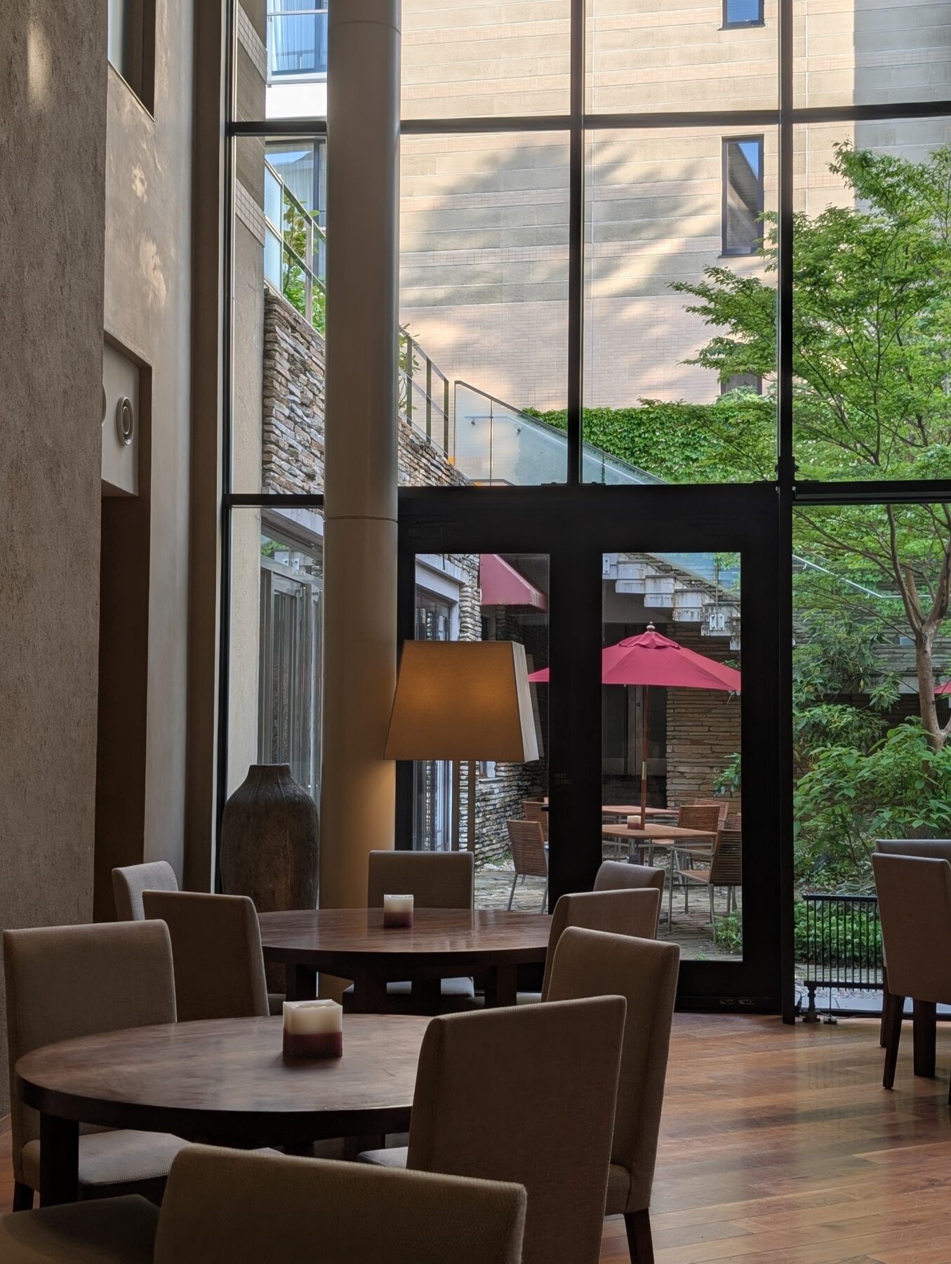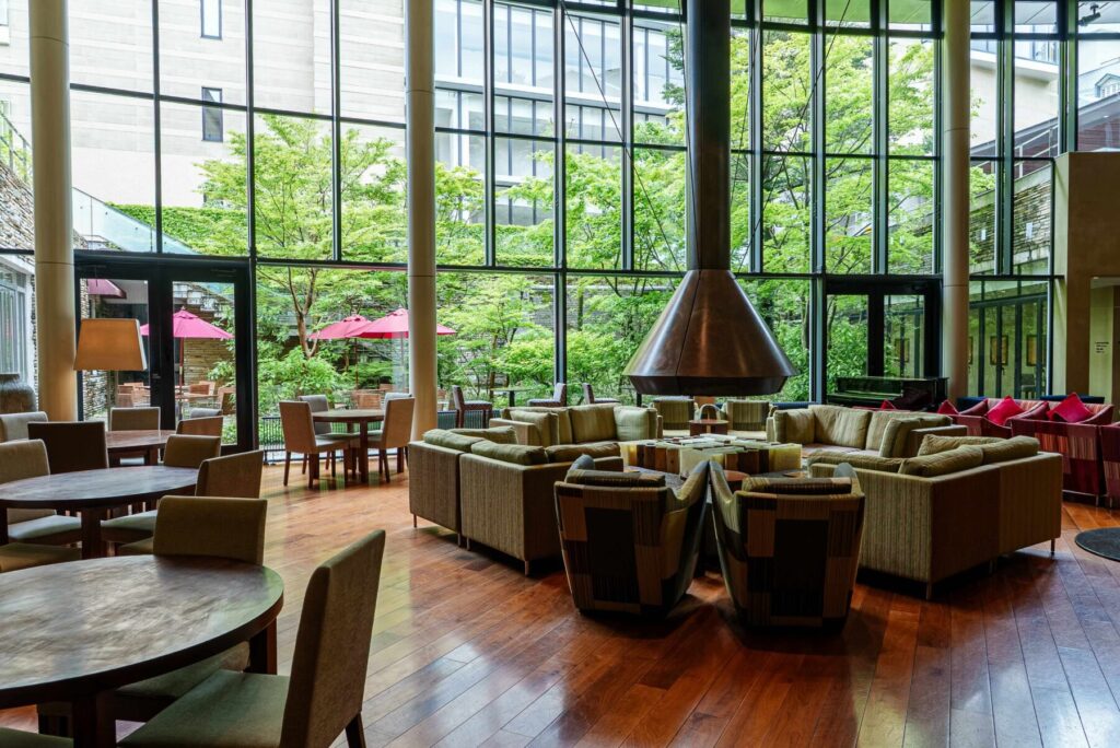 気候のよい季節には、ダイニングに併設された中庭のテラスで朝食やティータイムを楽しむのもお薦め。箱根の山々に囲まれるこちらでは、美しい庭園で爽やかな空気と料理が楽しめます。