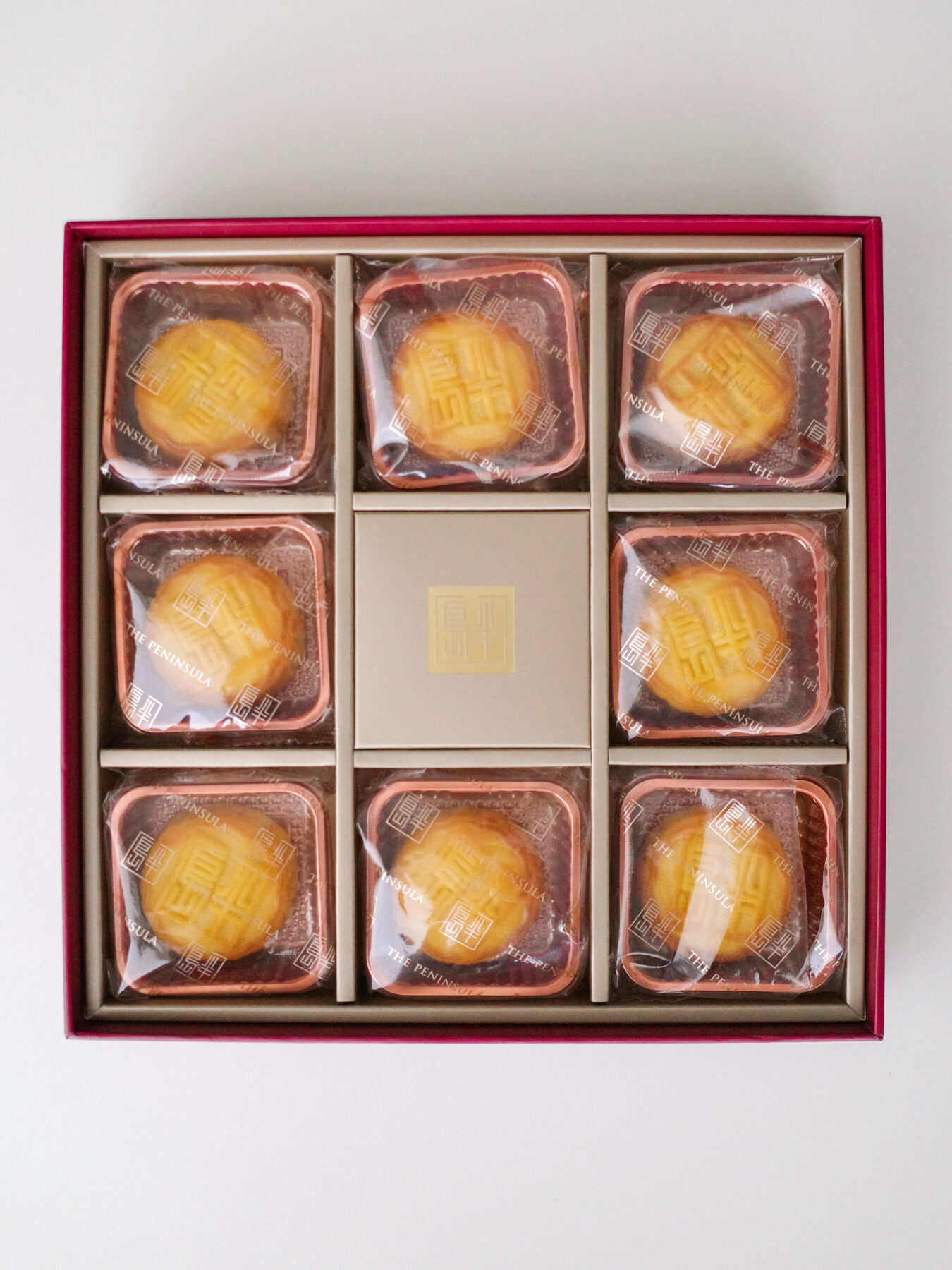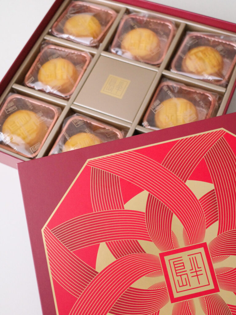 縁起の象徴にふさわしい菓子として、【ザ・ペニンシュラ ブティック】が贈るのは、赤と金の華やかなパッケージに包まれた月餅。