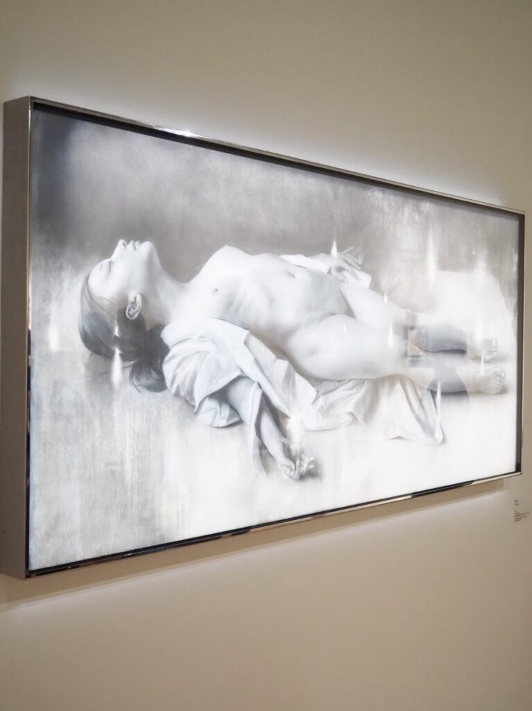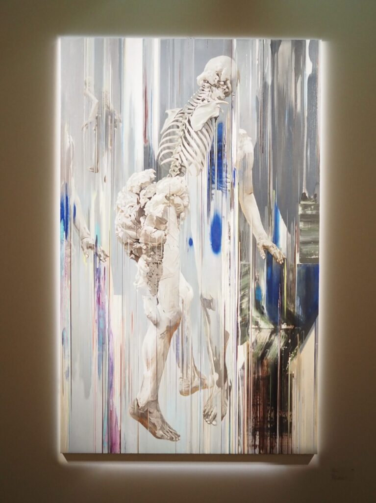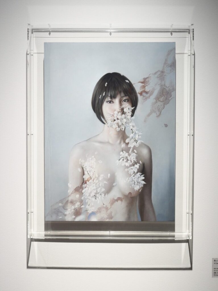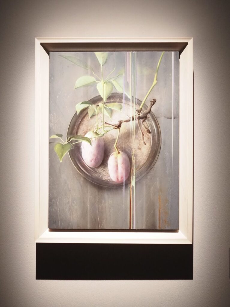 ヌードと植物、頭蓋骨を組み合わせた人物や、豆腐などの脆く壊れやすい静物など、どれも驚くほどの精緻さ。