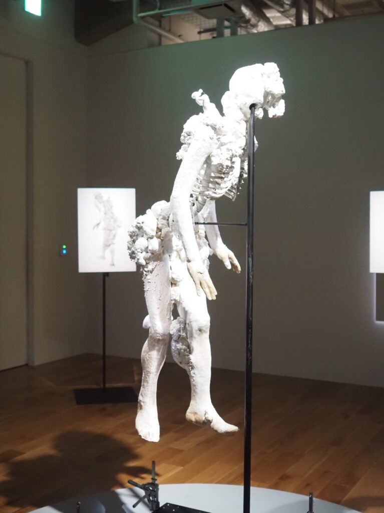 アトリエにあった古い骨格標本やプラスター、外壁充填材などでブリコラージュした人型のモチーフから感じる、静かな存在の重み。