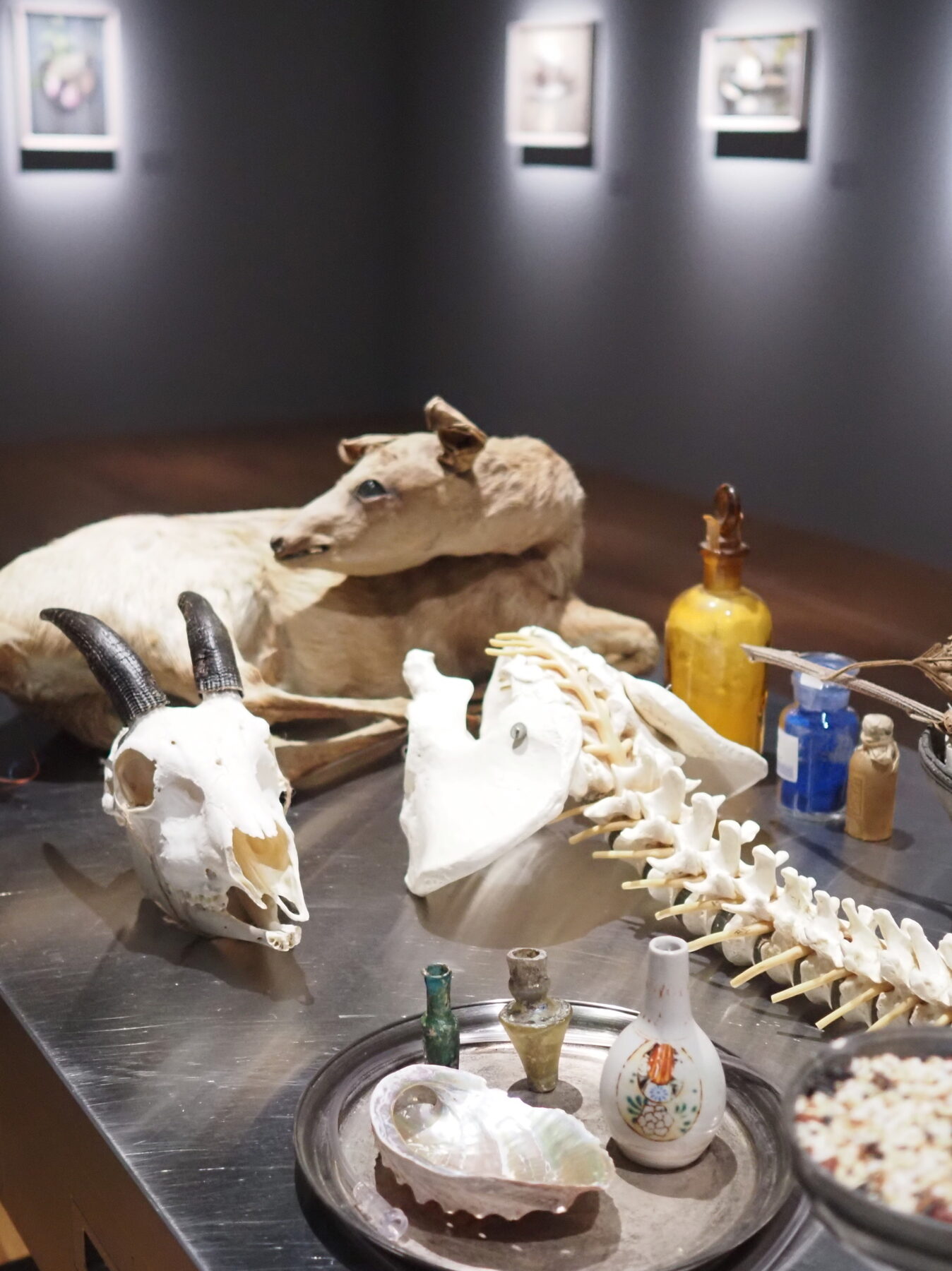 第4章「語り出さないのか」の作品たちに描かれているのは、動物の頭蓋骨や草花、豆腐、蚕、タロ芋などのモチーフ。