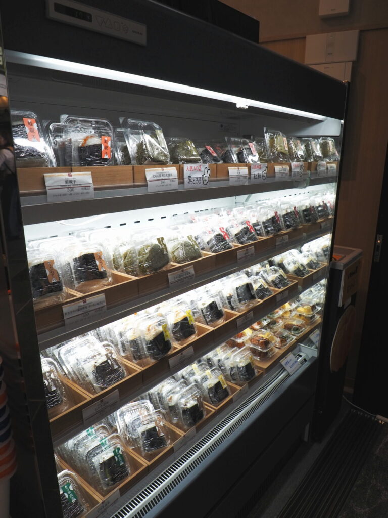 一番目立つ店先のショーケースにおむすびが所狭しと並んでいます。