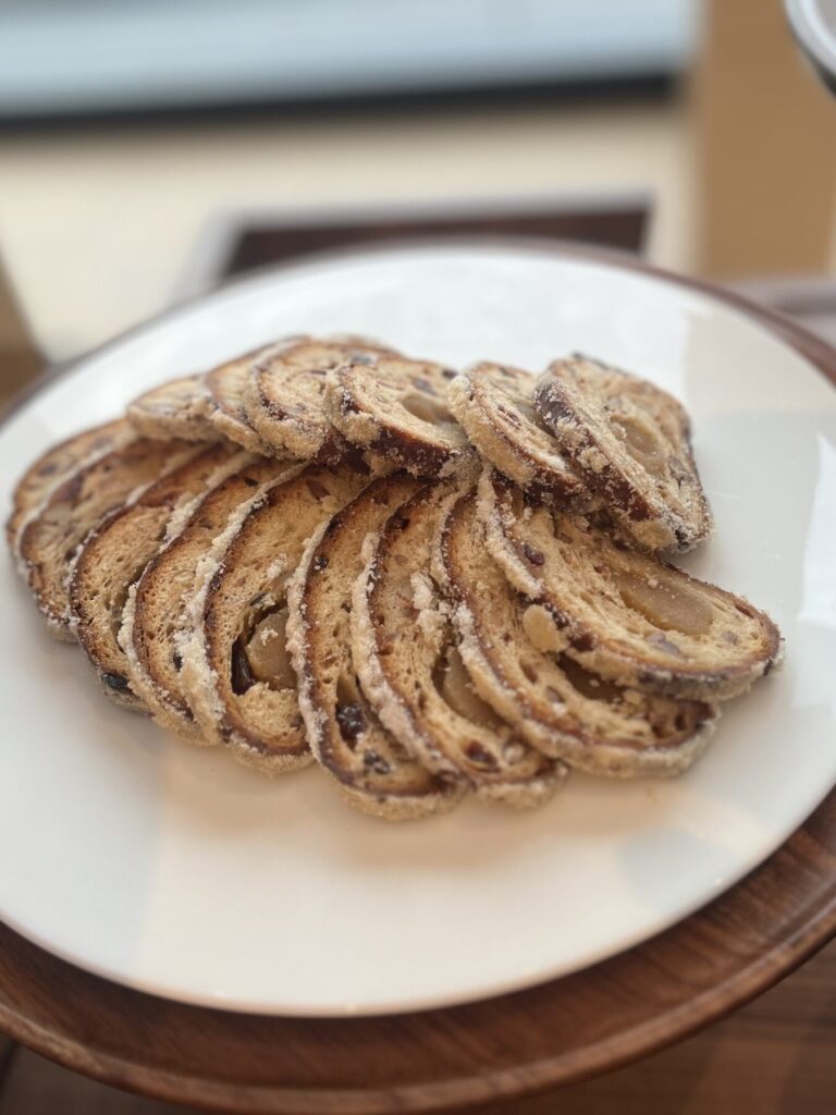 大粒のナッツと、果物の甘みが凝縮されたドライフルーツがたっぷりのホテルメイドのシュトーレンは、さすがのクオリティ。