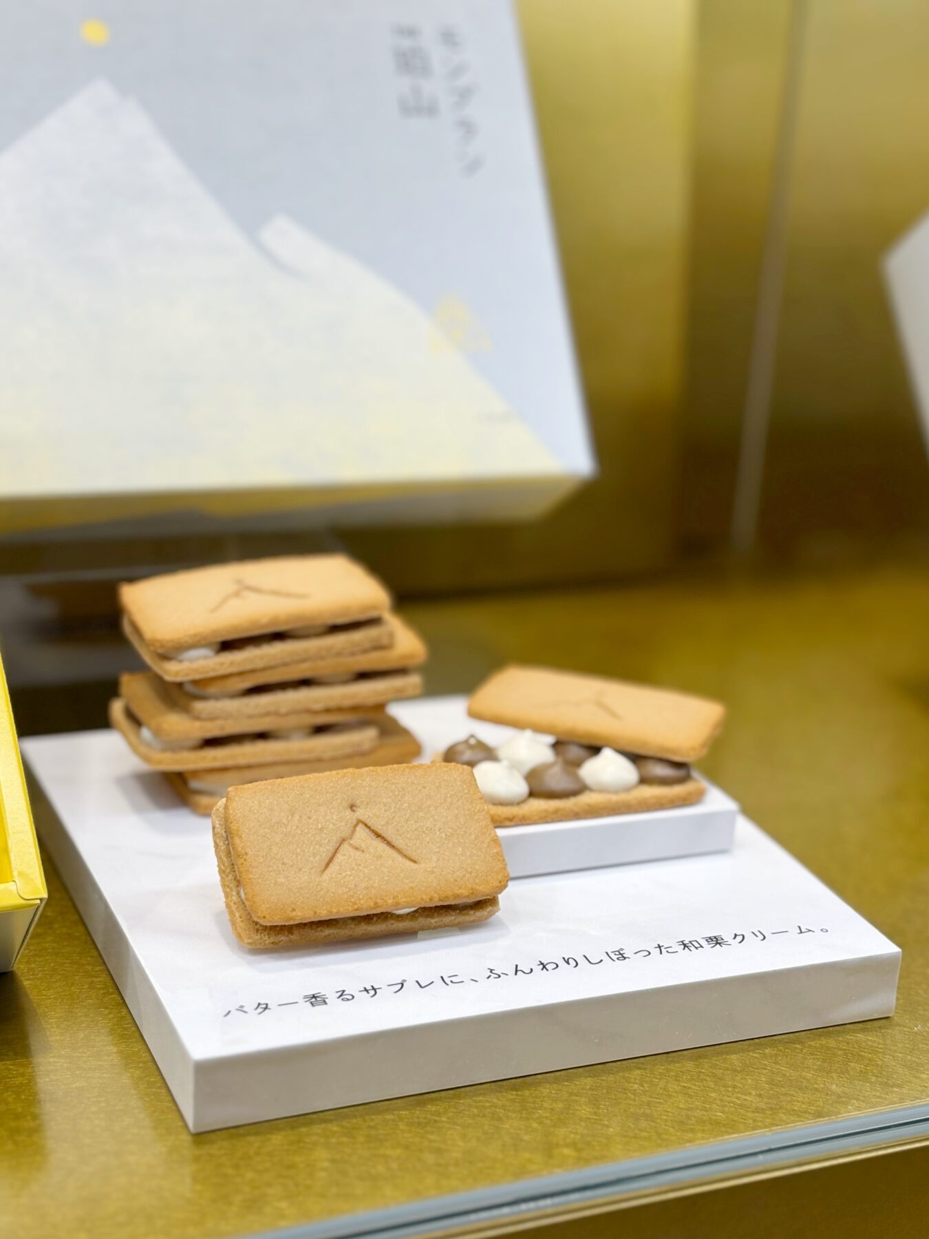 「モンブランサンド」は、風味豊かな和栗クリームと、ミルクホイップを交互にのせて、バター香る軽いサブレでサンド。