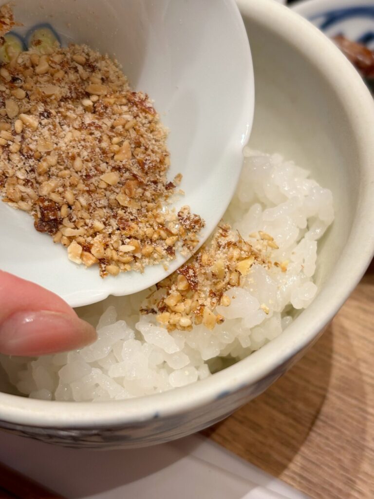 醤油味のごまにアーモンド・かつお節を加えて、香ばしい味わいに仕上げています。