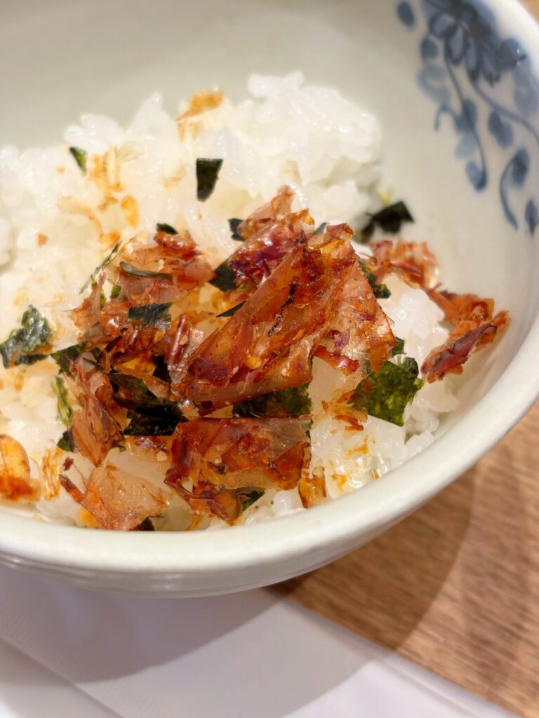 職人技が光る薄く削られたかつお節に、醤油、みりん、砂糖、塩で味をつけ、すりごまをまぶしてサクサクした食感が楽しめるふりかけに。