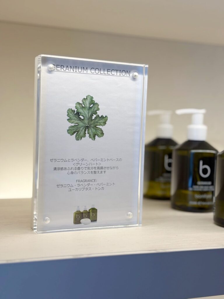 中でも、【パレスホテル東京】や、今年オープンした【1 Hotel Tokyo】のアメニティとしても採用されている「ゼラニウム」シリーズはベストセラーアイテム。
